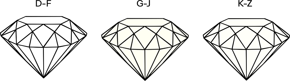 Diamonds are graded on a scale from D (colorless) to Z (noticeable yellow or brown tint). Colorless diamonds are rarer and more valuable, while slightly tinted stones can offer great value without compromising visual appeal.